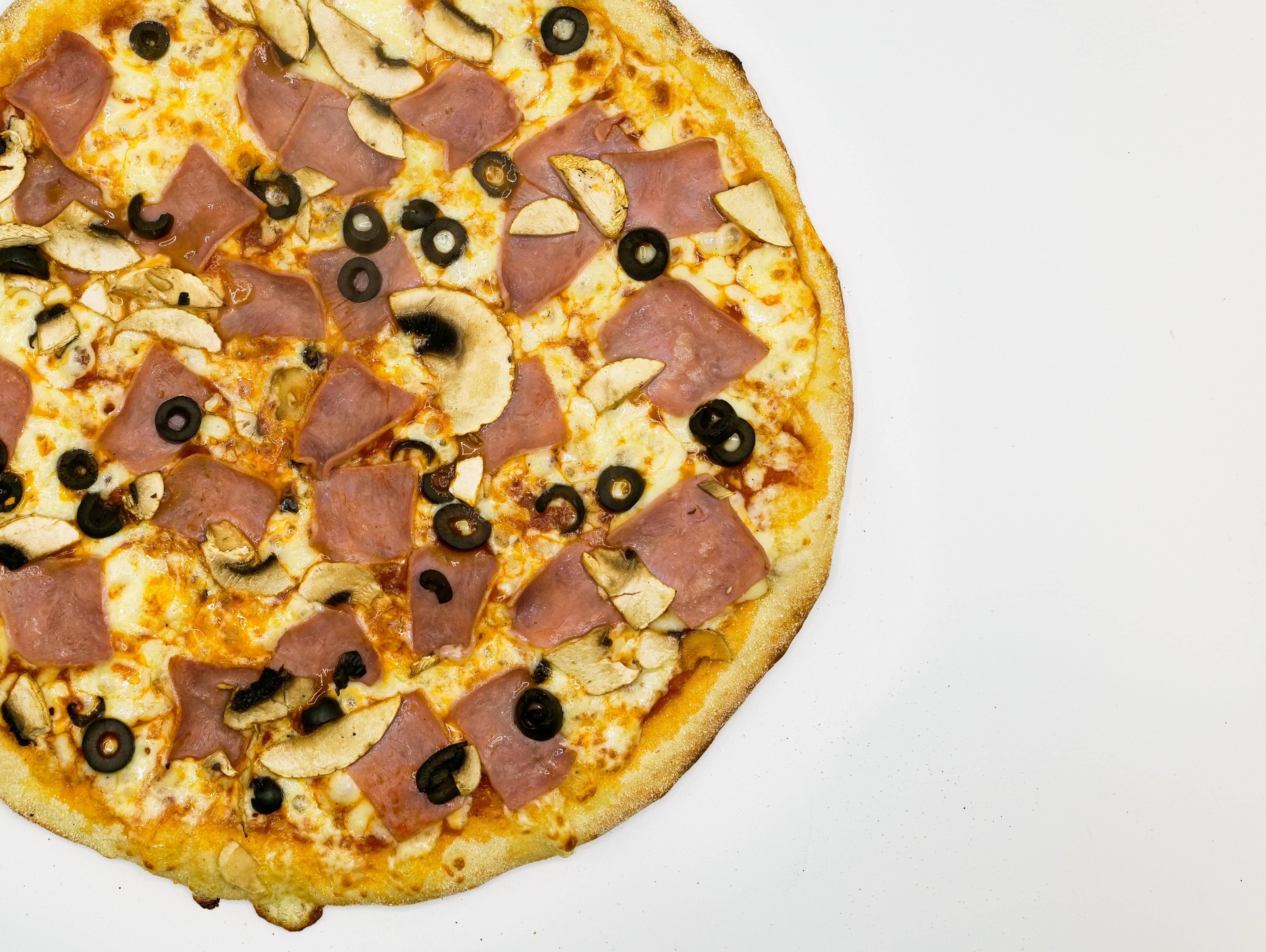 Sauce Tomate, Mozzarella, Jambon de dinde , Champignons , Olives noire